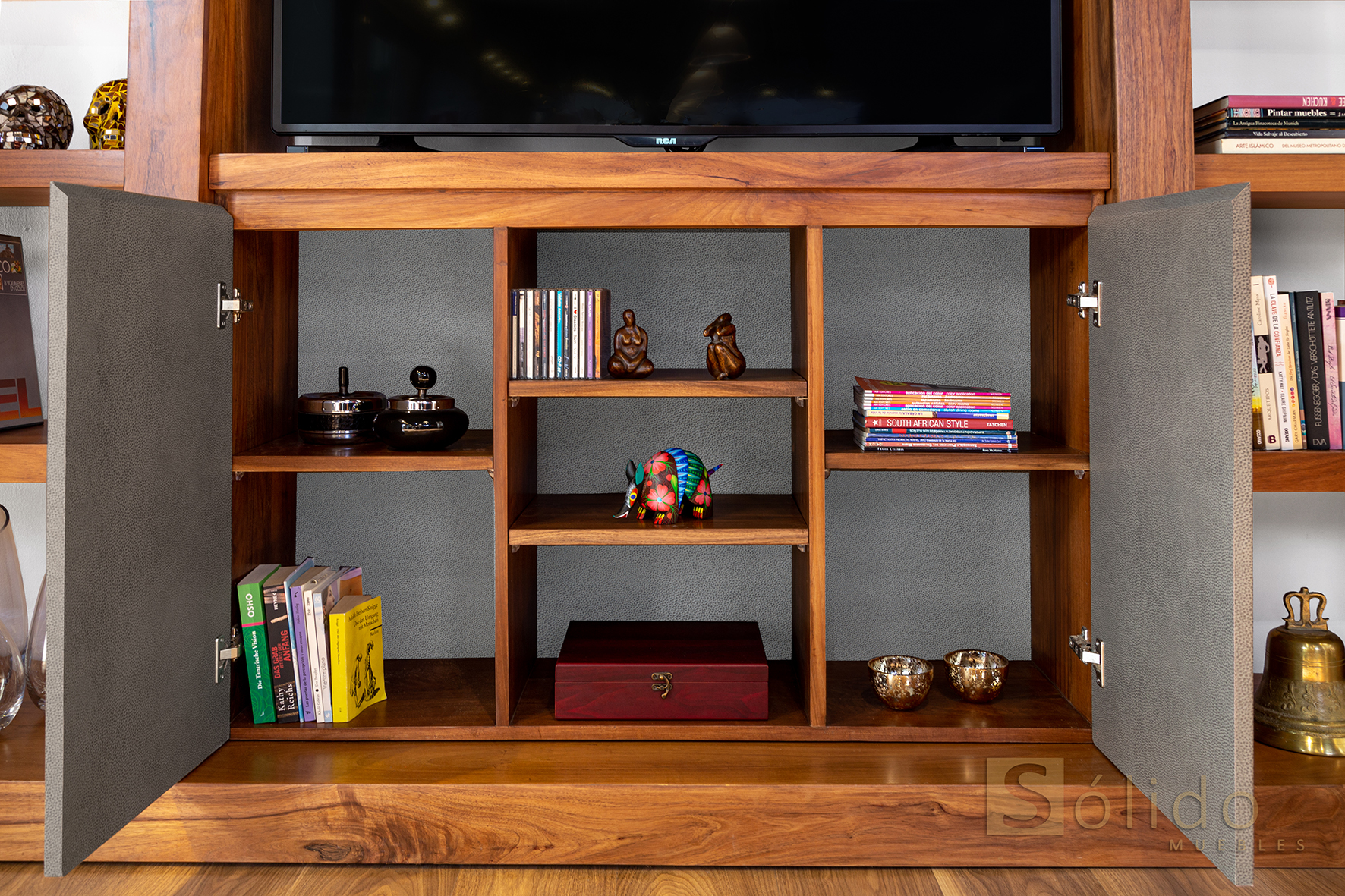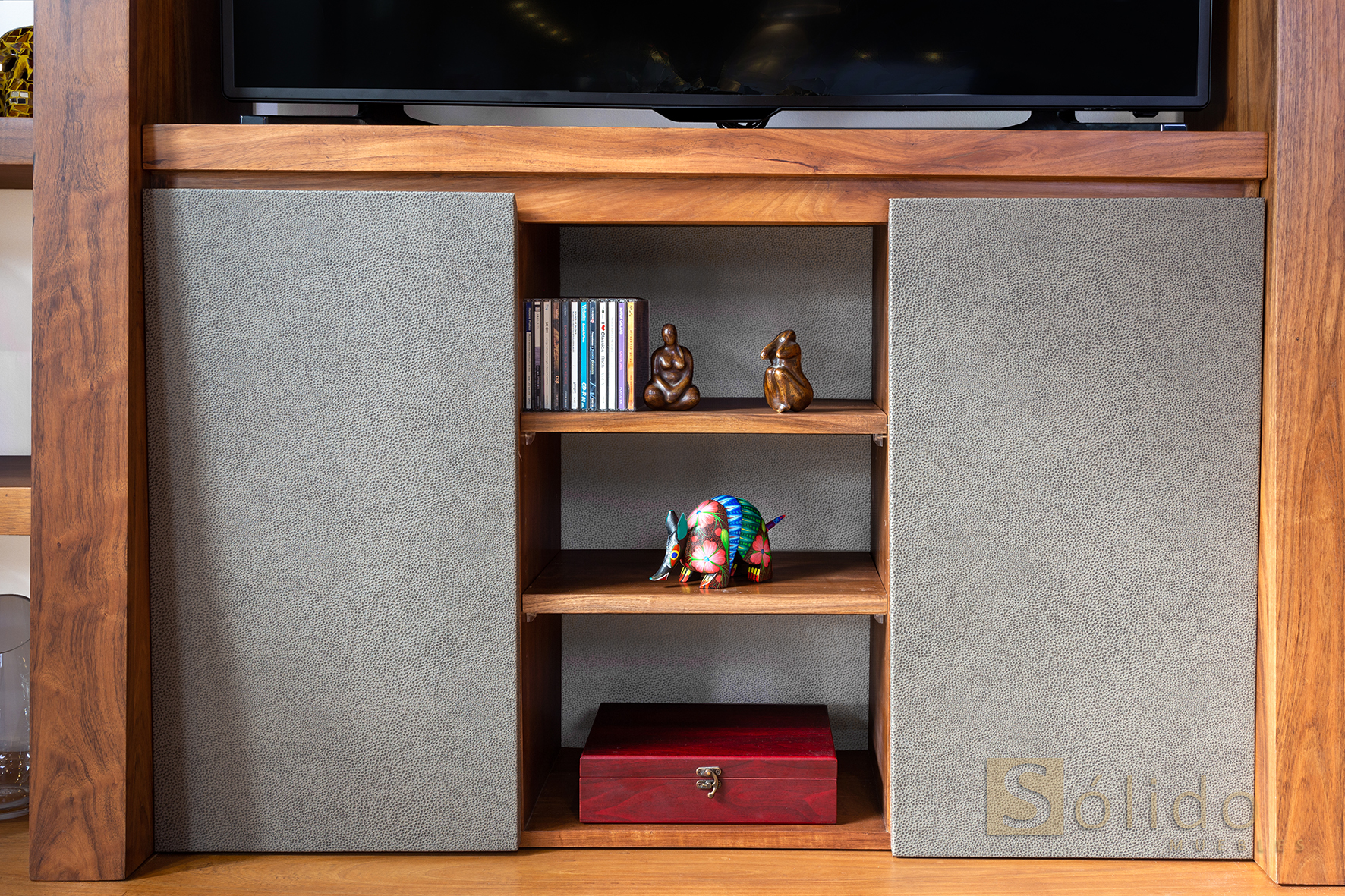 Los centros de entretenimiento de Sólido Muebles con sus mesas de centro, laterales y auxiliares, son el complemento armónico para cualquier tipo de sala y estilo de casa. Crean una combinación especial de minimalismo y lujo en los hogares. El diseño de cada mesa está definido por la veta natural y orgánica de la madera, por lo tanto, su personalidad es original y funciona muy bien en un entorno hecho especialmente para el divertimento.